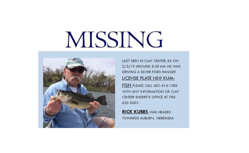 Kubes had been last seen Sunday morning in Clay Center before he left to return to his home in Auburn, Nebraska.