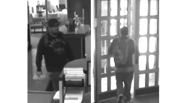 Officers were told that a white male standing approximately 5 feet 10 inches tall with a larger build and facial hair demanded money from the bank. The suspect was wearing dark color clothing, a ball cap, glasses, and a dark color backpack.