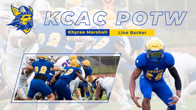 LINDSBORG, KAN. – Khyree Marshall has earned this week’s KCAC Football Defensive Player of the Week honors the conference office announced Monday. Marshall was selected for his performance on September 14 against Tabor College by a vote of conference sports information directors.