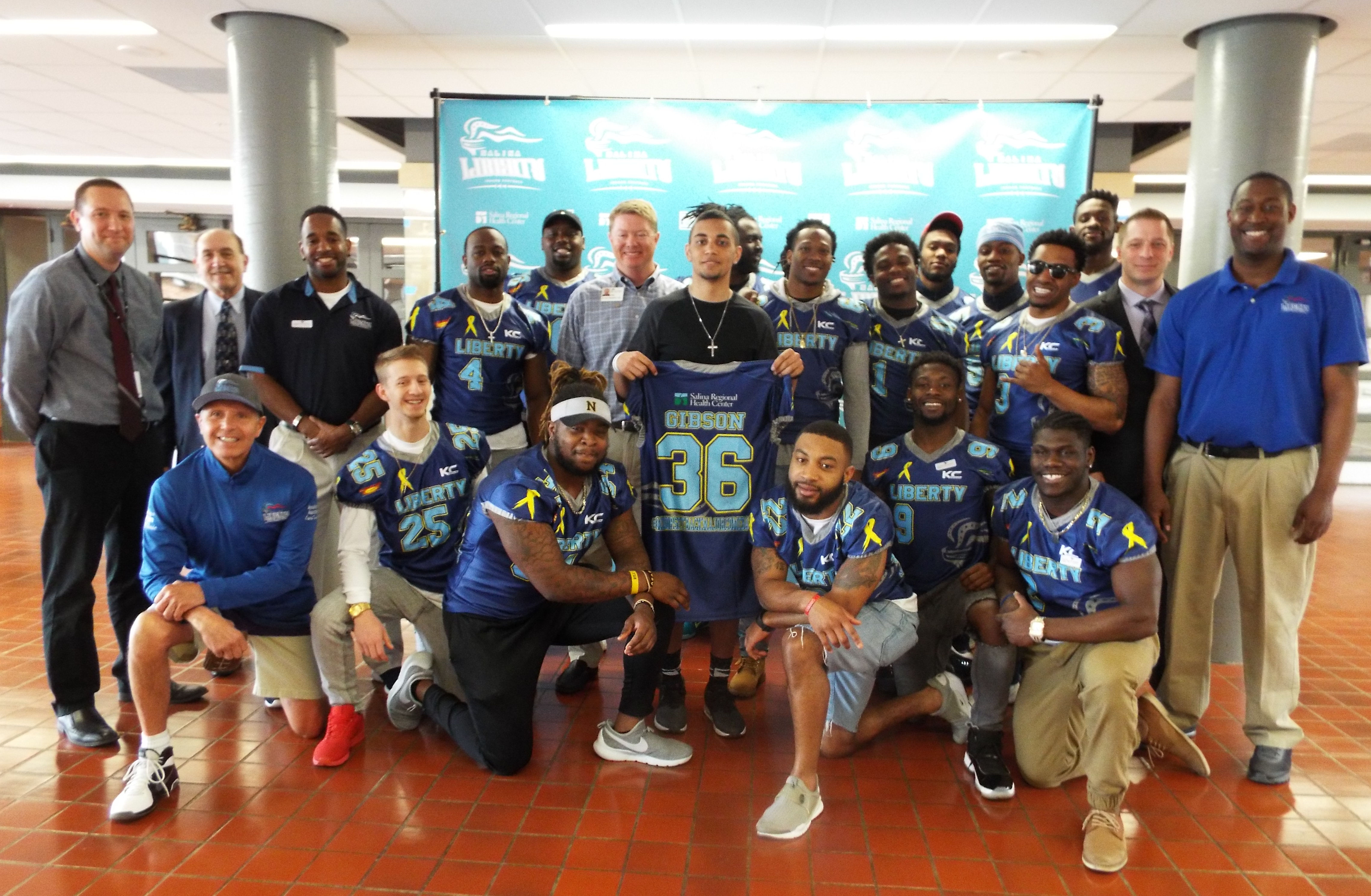 Bertz said that along with auctioning the jerseys, the team has also started a public pledge drive, with a donation made for every touchdown the Liberty scores on Saturday. The goal is $1,000.