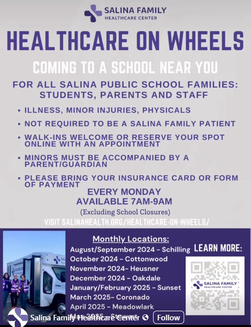 Salina Family Healthcare Center’s mobile “Healthcare on Wheels” vehicle is offering its services at Salina USD 305 schools.