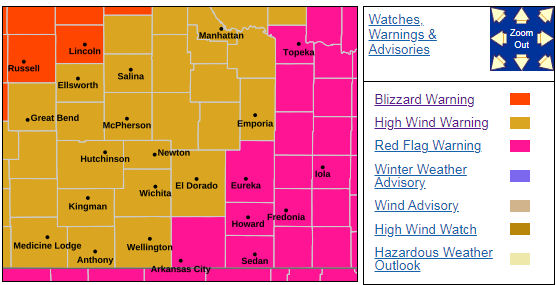 Other areas of the state, including the Salina area, will be under a High Wind Warning during the same time period. Regardless of whether or not there is snow, very strong northwest wind will impact much of the area with locations along and west of the Flint Hills experiencing wind gusts around 55 to 65 mph during the day on Wednesday.