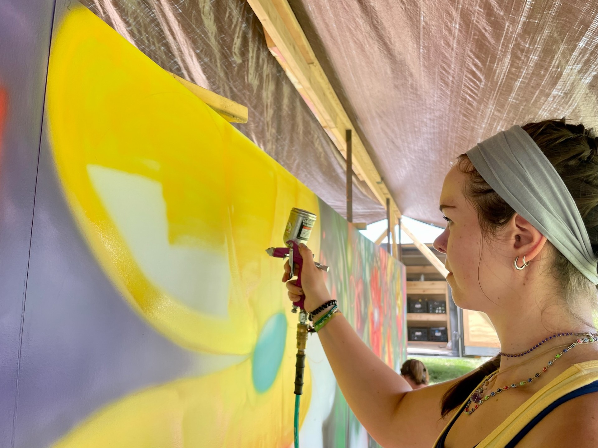 The duo is tackling the 14-panel project with paint guns and what looks like free-flowing creativity. But the artist who has finished major mural projects like the giant grain elevator in Inman, Kansas says it takes a little more planning.