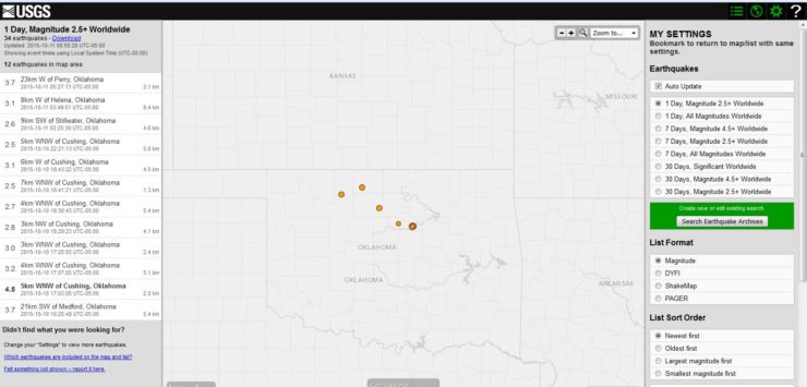 The U.S.G.S. also reports a 3.7 magnitude quake about 13 miles southwest of Medford at 10:20 a.m. and a 3.0 magnitude temblor one mile northwest of Cushing at 5:20 p.m. There was also a magnitude 2.9 earthquake recorded at 7:53 a.m. five miles east of McLoud in central Oklahoma.