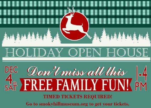 According to the organization, this free family fun event will be Saturday, December 4th, from 1:00 – 4:00 pm. Timed tickets are required, so go to smokyhillmuseum.org to get your tickets now.