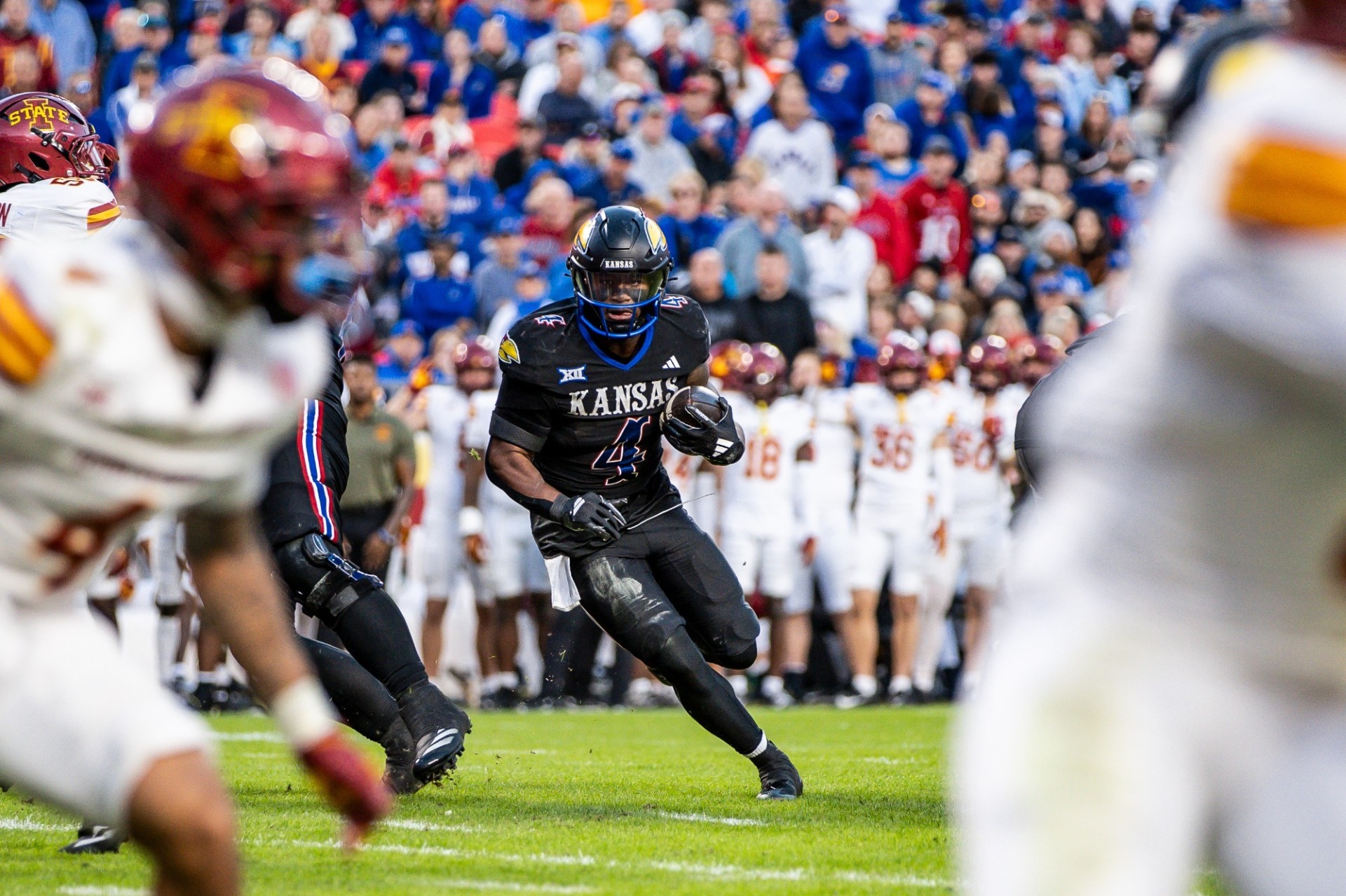 Senior running back Devin Neal became the program’s all-time leading rusher and the Kansas Jayhawks took down No. 17 Iowa State 45-36 on Saturday afternoon at GEHA Field at Arrowhead Stadium.