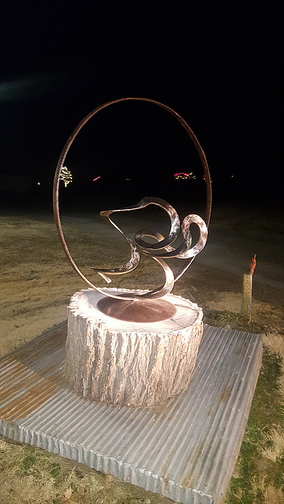 Captain Paul Forrester tells KSAL News that sometime Saturday between 1pm and 9:30pm, someone broke two pieces off a metal spiral corkscrew sculpture that was on a pedestal located at 7th and Iron across from the Smoky Hill Museum.