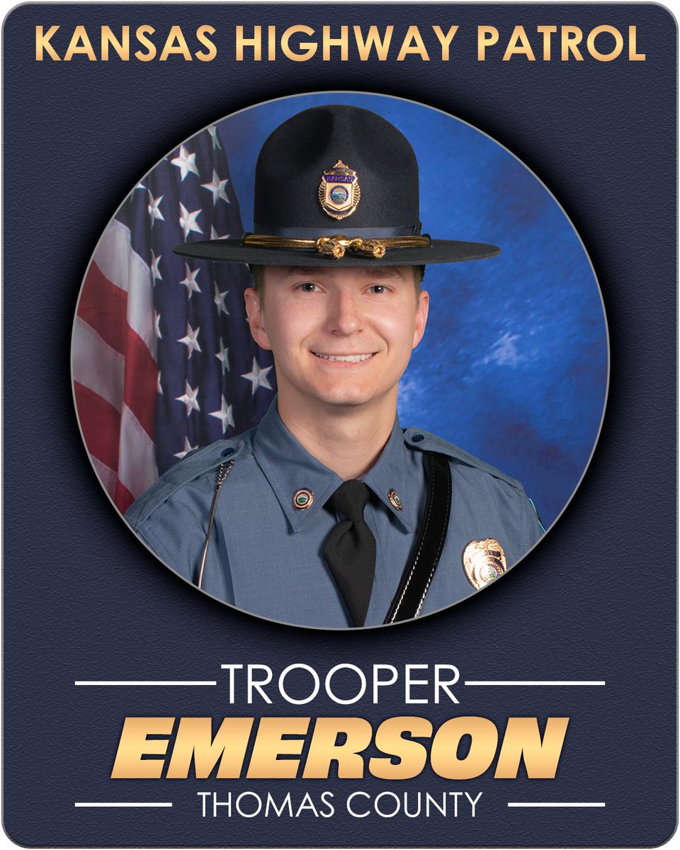 - Thomas County – Trooper Adam Emerson, K-389. Trooper Emerson’s father, Chris Emerson, placed his badge on him for the first time. His hometown is Hays, Kansas. His duty station is Thomas County.