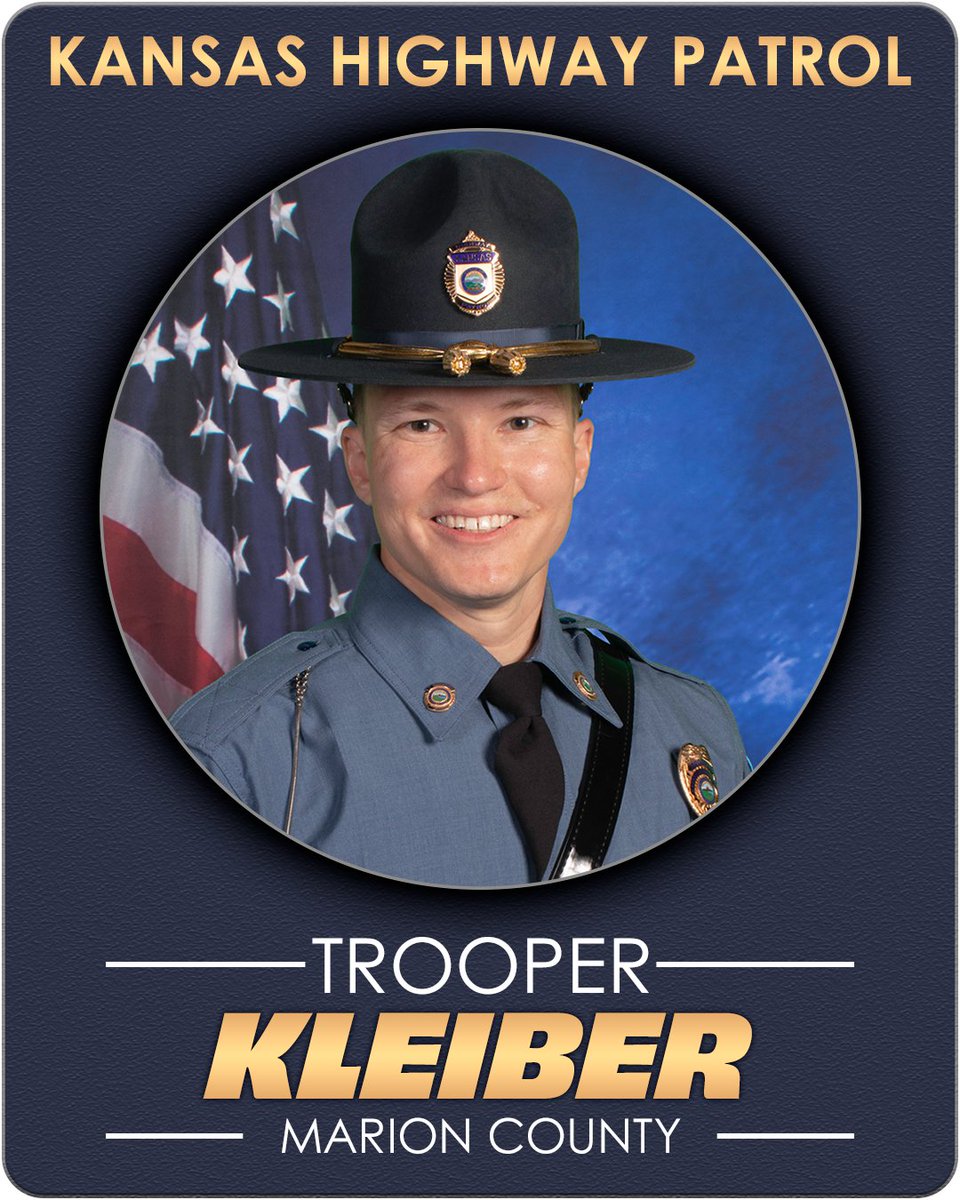 - Marion County – Trooper Nicholas Kleiber, K-421. Trooper Kleiber’s mother, Peggy Kleiber, placed his badge on him for the first time. His hometown is Marion, Kansas. His duty station is Marion County
