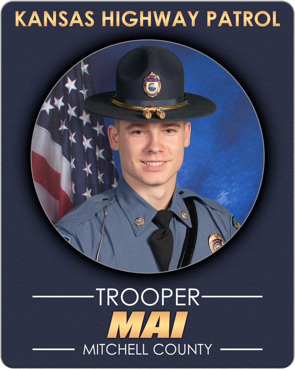- Mitchell County – Trooper Andrew Mai, K-477. Trooper Mai’s wife, Sarabella Mai, placed his badge on him for the first time. His hometown is Beloit, Kansas. His duty station is Mitchell County.