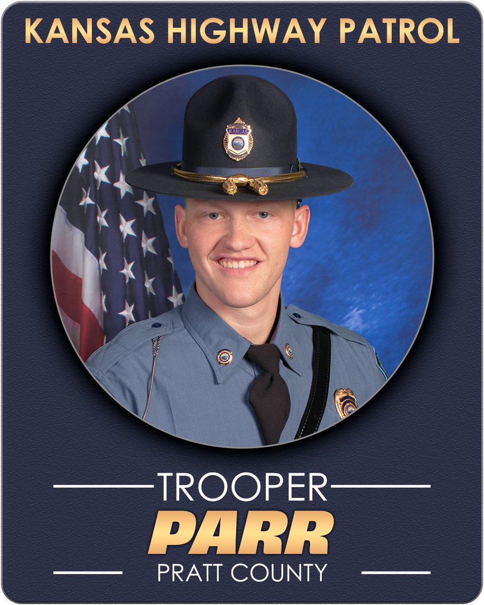 - Pratt County – Trooper Kreed Parr, K-169. Trooper Parr’s father, Jeff Parr, placed his badge on him for the first time. His hometown is Macsville, Kansas. His duty station is Pratt County.