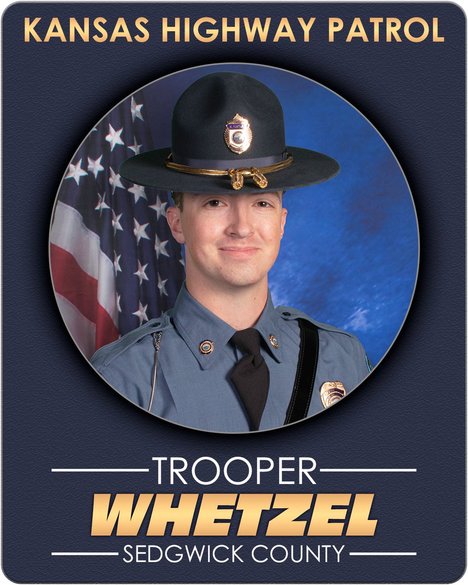 - Sedgwick County – Trooper Caden Whetzel, K-456. Trooper Whetzel’s mother, Kim Whetzel, placed his badge on him for the first time. His hometown is Ellsworth, Kansas. His duty station is Sedgwick County.