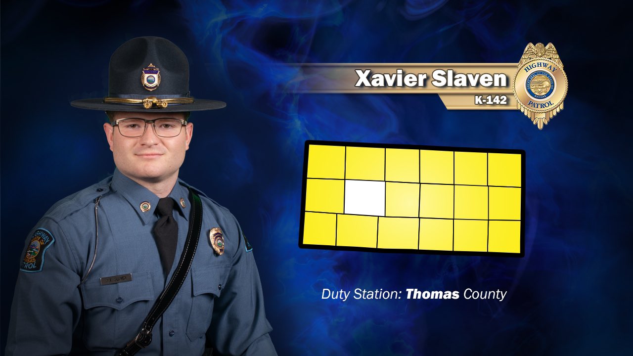 - Trooper Xavier Slaven – Trooper Slaven’s wife, Brooke Slaven, placed his badge on him for the first time. His hometown is Colby, Kansas. His duty station is Thomas County.