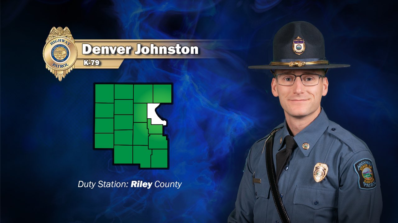 - Trooper Denver Johnston – Trooper Johnston’s wife, Cora Johnston, placed his badge on him for the first time. His hometown is Garnett, Kansas. His duty station is Riley County.