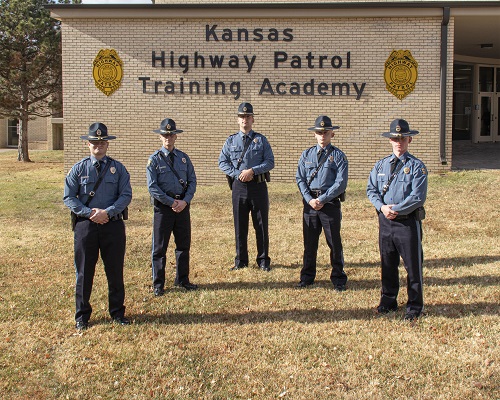A group of Kansas Highway Patrol recruits had their badges pinned on Wednesday afternoon in Salina and officially became Kansas Highway Patrol Troopers. The five new officers were part of KHP Recruit Class #64, the latest graduates from the Kansas Highway Patrol Training Academy in Salina.