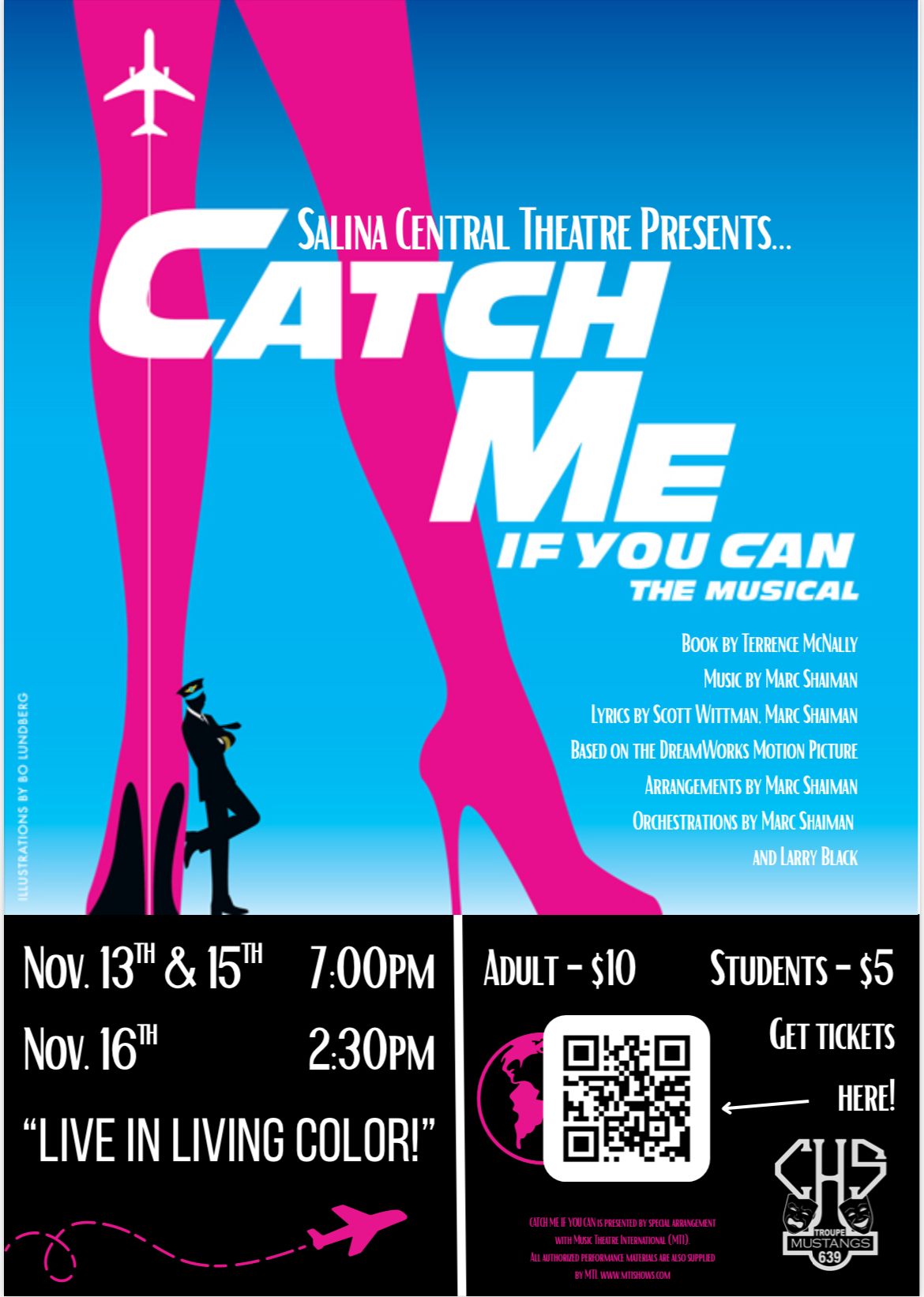 According to the school, on Thursday, November 14th, and Saturday, November 15th at 7:00pm, and Sunday November 16th at 2:30pm, Salina Central Mustangs Theatre Troupe 639 and the Salina Central Jazz Band will present the musical "Catch ...