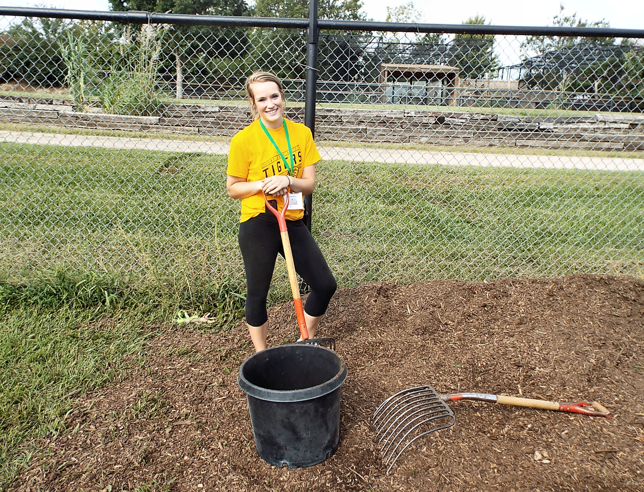 [caption id="attachment_16489" align="alignnone" width="400"] "Tigers in Service" volunteer students helping to haul, and spread mulch.[/caption]