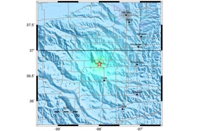 The U.S. Geological Survey says an earthquake with a preliminary magnitude of 4.3 struck northern Oklahoma and Southern Kansas on Monday night.