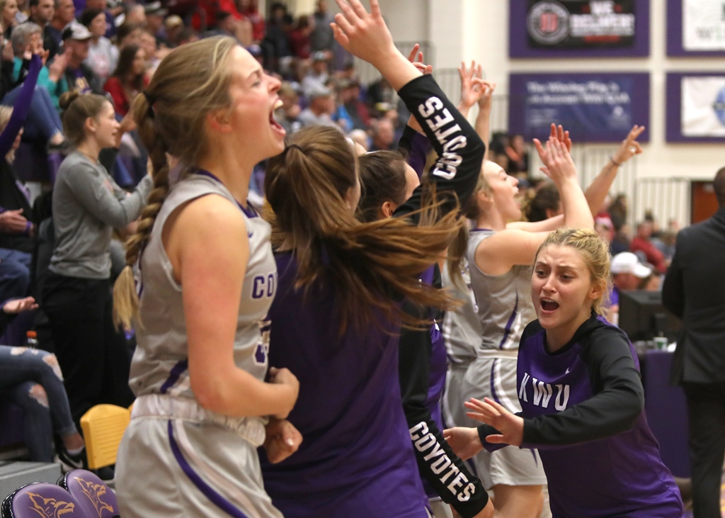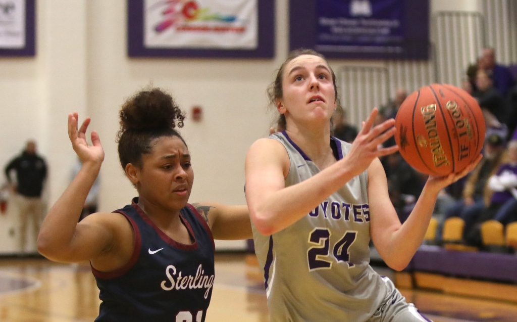 Amanda Hill (JR/Rossville, Kan.) had 20 points for the Coyotes, and was one of three KWU players in double figures, but KWU couldn’t slow down a sizzling hot Sterling squad that shot 58.7 percent from the field for the game (37-of-63) and were led by Kylah Comley with 32 points.