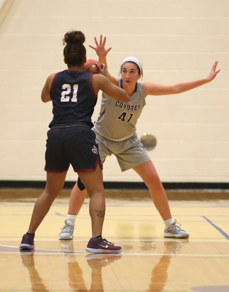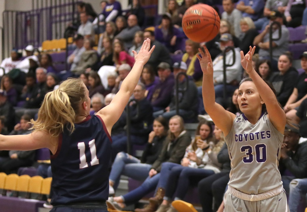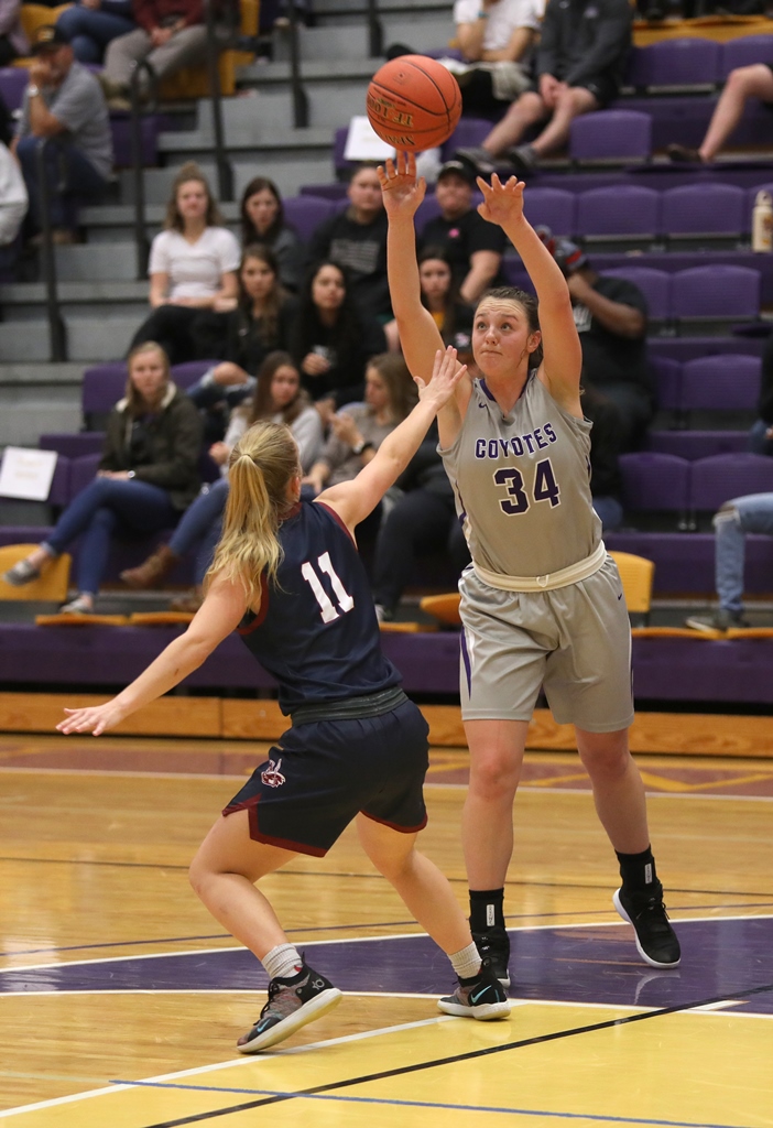 Kelcey Hinz (SO/Whitewater, Kan.) added 12 points and Courtney Heinen (SR/Axtell, Kan.) had 11 for the Coyotes who shot 27-of-65 from the field for 41.5 percent. Hinz and Hill had four rebounds each to lead the Coyotes.