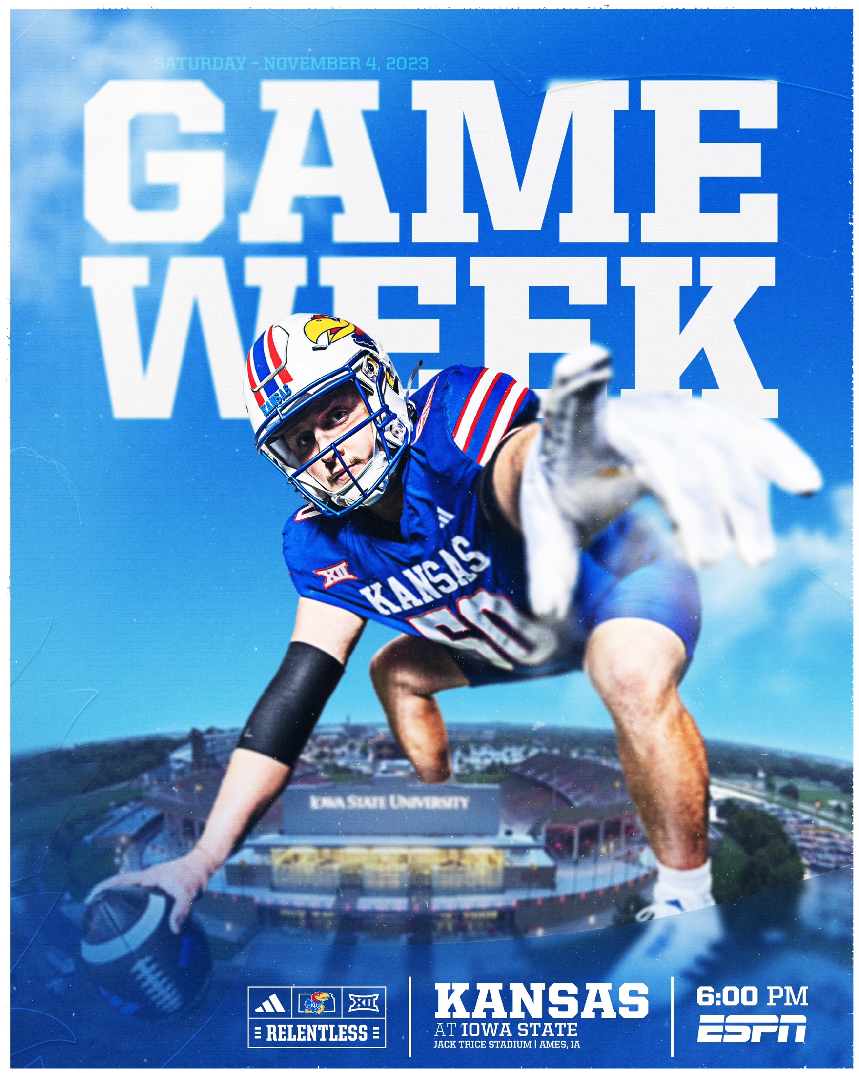 LAWRENCE, Kan. – This week’s Cheez-It National Team of the Week, the No. 22 Kansas Jayhawks will travel to Jack Trice Stadium to take on the Iowa State Cyclones on Saturday, November 4.