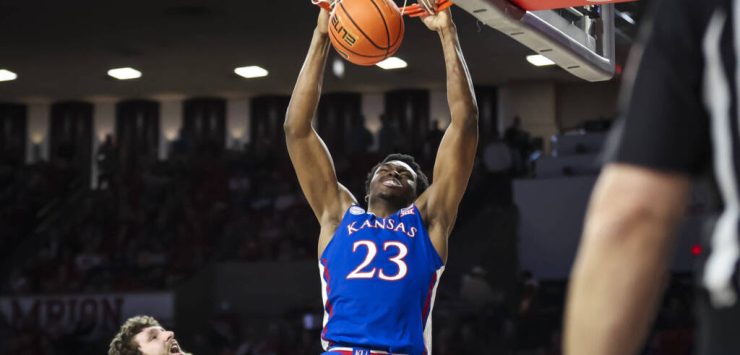 Wilson didn’t score until he made a jumper with about four minutes left in the first half, and he was just getting started. He knocked down two 3-pointers in the final minute, and the Jayhawks led by at least five points the rest of the way.