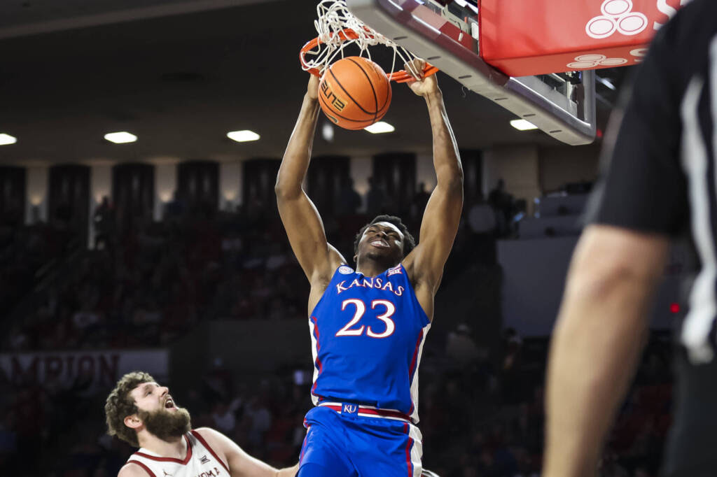 Harris provided needed scoring support for Wilson, especially with Oklahoma limiting Kansas’ freshman sharpshooter, Gradey Dick, to five shots — none of them 3s. Harris has posted three of his four highest-scoring games this season in his past three contests.