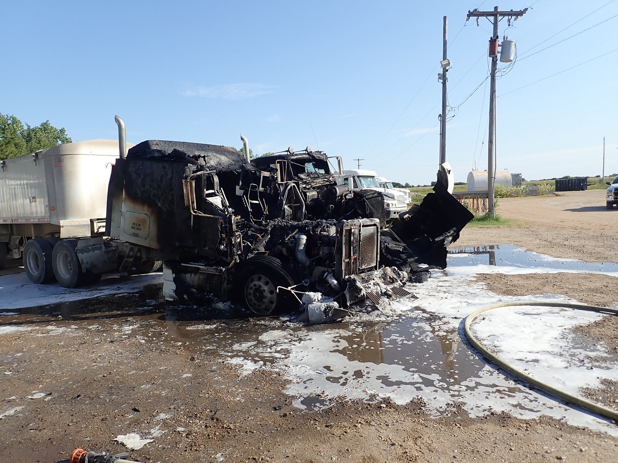 Crews from both the Salina Fire Department and Rural Fire District No. 7 responded to the blaze and kept it from spreading to the trailers. Early reports indicate that no foul play is expected in the fire. Fire officials think a mechanical issue could be the cause.