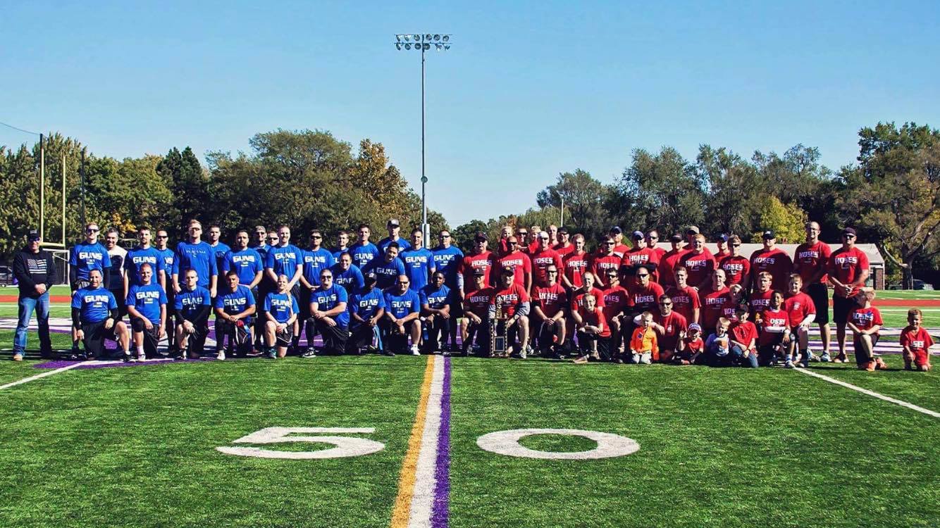 Since 2006, law enforcement officers, firefighters and EMTs in Salina have come together every October to raise money for local families in need via an annual fund-raising “Guns & Hoses” flag football game. The “Guns & Hoses” game pits Salina Police Officers against Salina Firefighters. No matter the final score, the real winners are Salina families dealing with medical issues.