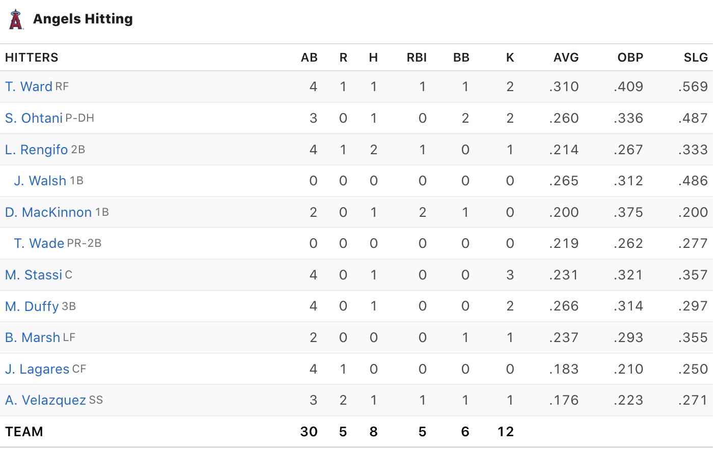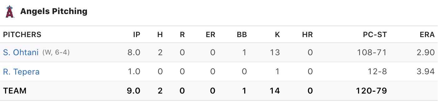 The first two Royals of the game reached with hits, but following that, Ohtani retired all but one hitter he faced, allowing just one walk, which was quickly dispatched by a double play.