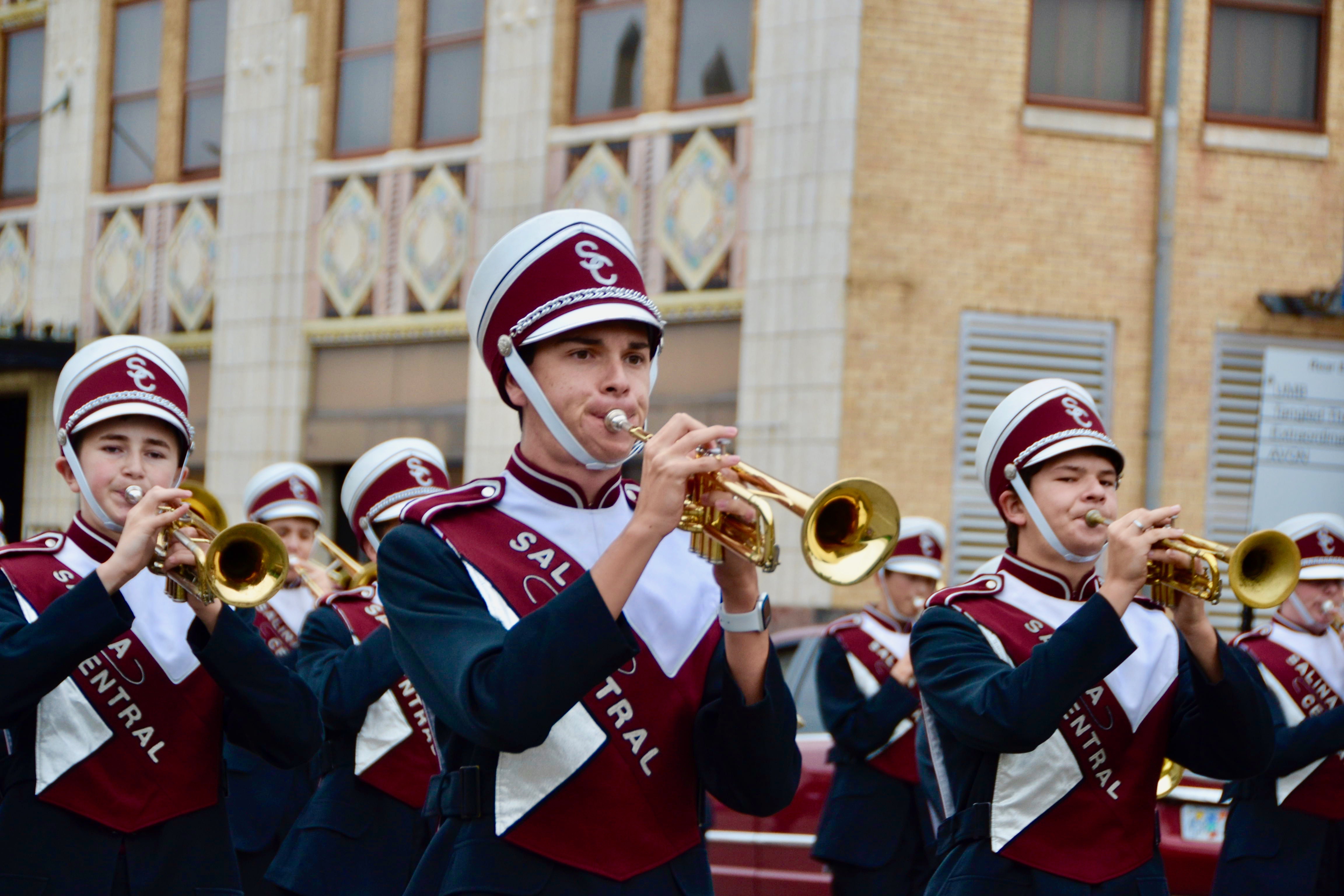 Getting ready for the show while Salina Central’s Marching Band celebrates the sound of music.