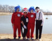 With two rescue divers in the water as a precaution and EMS standing by, about 20 people took the plunge into the 28 degree water. Many were dressed in colorful costumes, to the delight of the crowd.