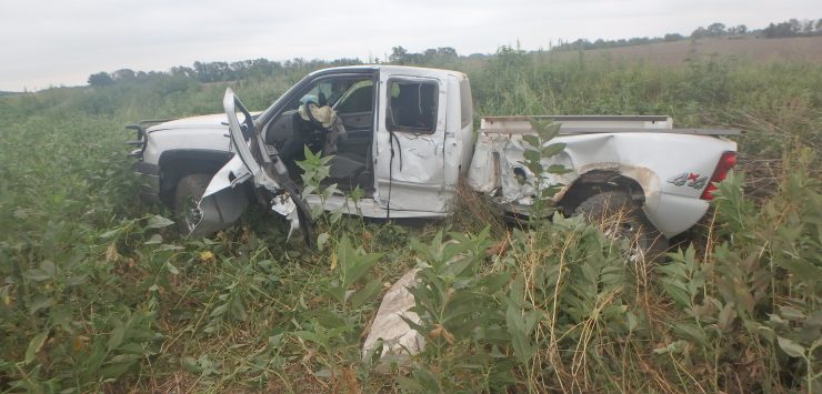 Authorities say the southbound Kenworth semi hit the eastbound Chevy Silverado just behind the driver’s door and then overturned.
