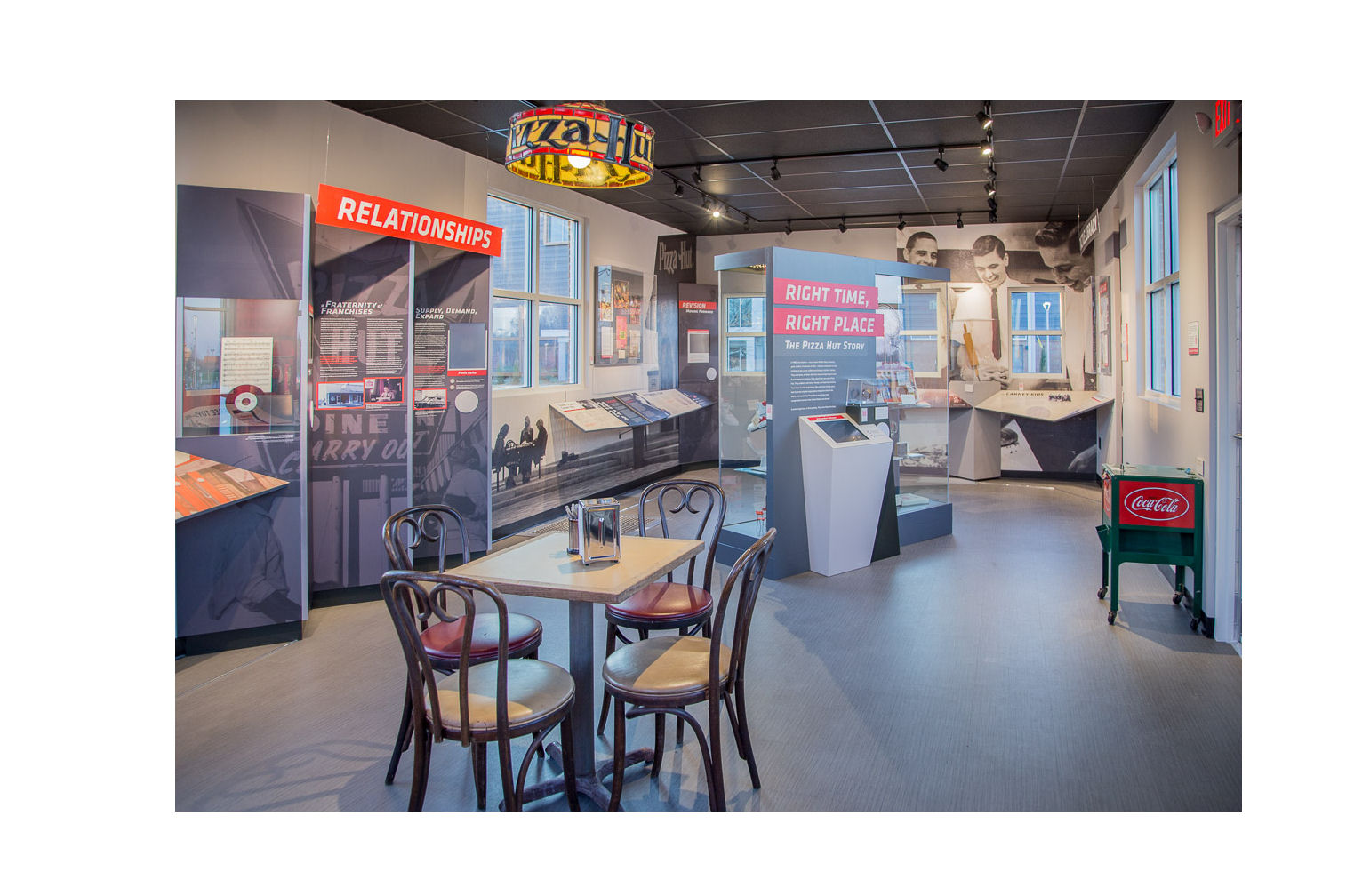 Though small, the museum is packed with displays, interactive features and artifacts, including a cafĂ© table under a vintage light fixture and a cutout of the Pizza Pete icon. Visitors will be able to watch early TV commercials, learn about Pizza Hut’s famous Book It! program and view mementos such as early menus, promotional items, serving trays, glassware and more.