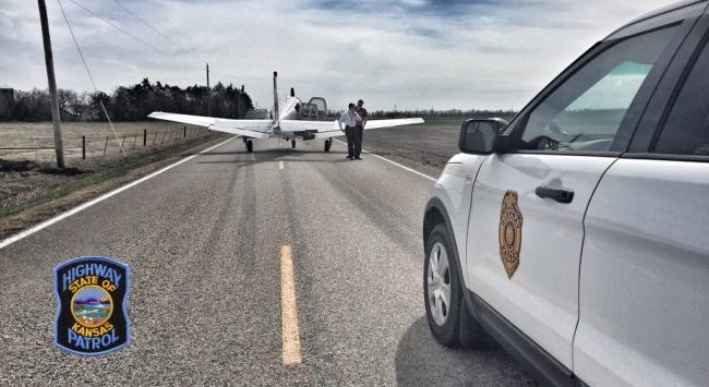 According to the Kansas Highway Patrol, troopers responded to a “plane down” call early in the afternoon. First responders found a small aircraft on the ground, at 21st and Overland .