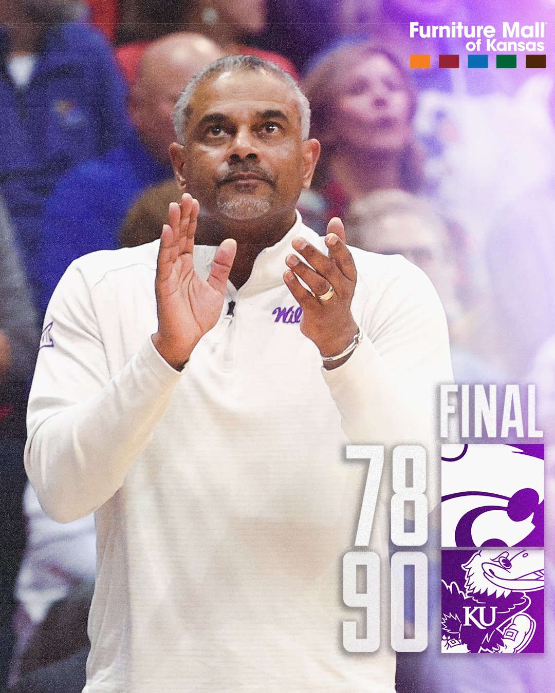 LAWRENCE, Kan. – No. 7/6 Kansas State could not overcome a poor shooting night, as the Wildcats shot a season-low 33.9 percent from the field in falling 90-78 to No. 8/8 Kansas in the 299th edition of the Dillons Sunflower Showdown on Tuesday night before a sold-out crowd of 16,300 at Allen Fieldhouse.