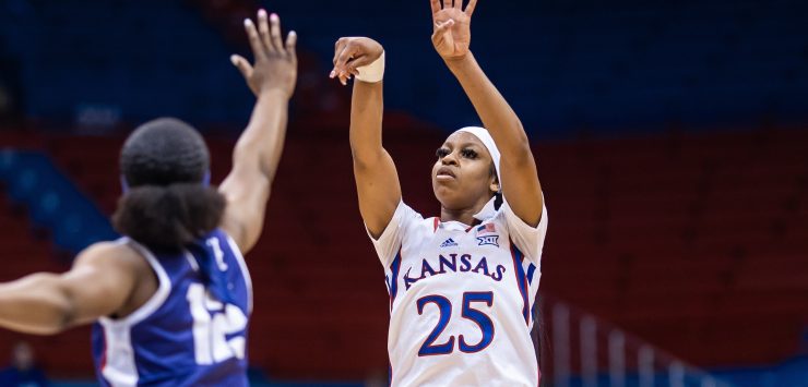 “I thought everybody that checked into the game today did something really positive,” Kansas Coach Brandon Schneider said. “You can look at Zsofia (Telegdy) and Katrine (Jessen) especially, coming in and combining for 13 rebounds. We had a lot of players come in and provide something and we had to play through some foul trouble in the first half when we are already short-handed.”