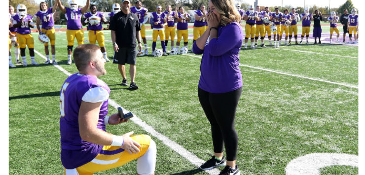 To open the pregame festivities, seniors on the Kansas Wesleyan football team lined up, and marched out onto the field with family members. Before all was said and done, though, it became an extra special moment. Devin Rizzo-Foden, a running back from Laguna Niguel, California, planned what turned out to be a life-changing event.