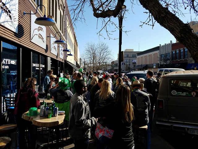 Salina Downtown’s “St. Paddy’s Day Pub Crawl 2018” event attracted a large crowd of enthusiastic revelers. Many dressed in bright, festive, green attire and were enjoying their favorite cold beverages.