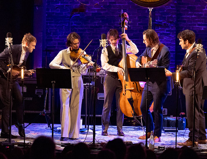 Punch Brothers are mandolinist Chris Thile, guitarist Chris Eldridge, bassist Paul Kowert, banjoist Noam Pikelny, and violinist Brittany Haas. Their accolades include a Grammy for Best Folk Album for their 2018 release, All Ashore.