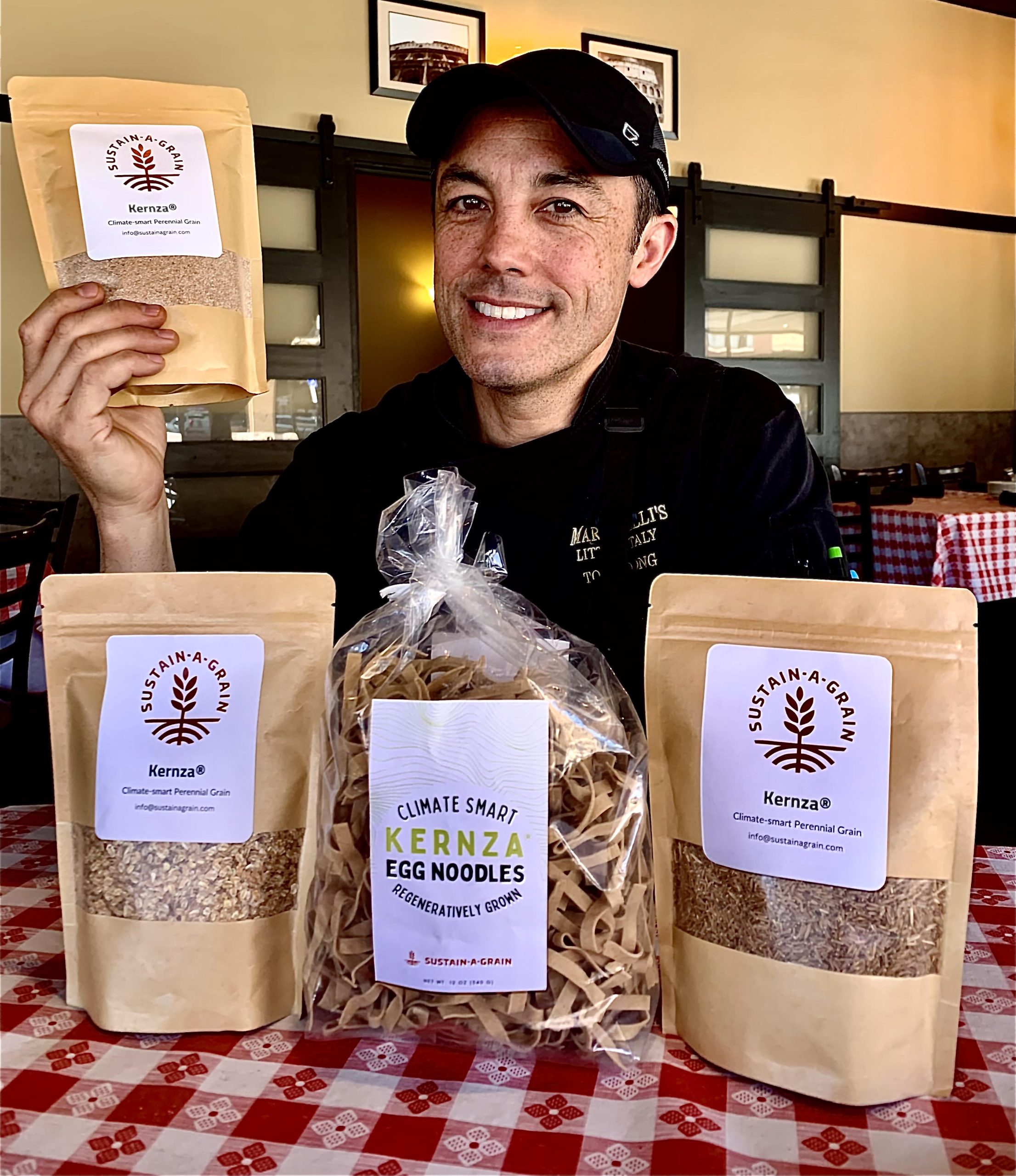 - Martinelli’s Little Italy owner Tony Dong, of Salina, is stoked to put these Kernza® products to work during the Kernza®4Kansas event over Earth Day weekend. Photo by Tim Unruh