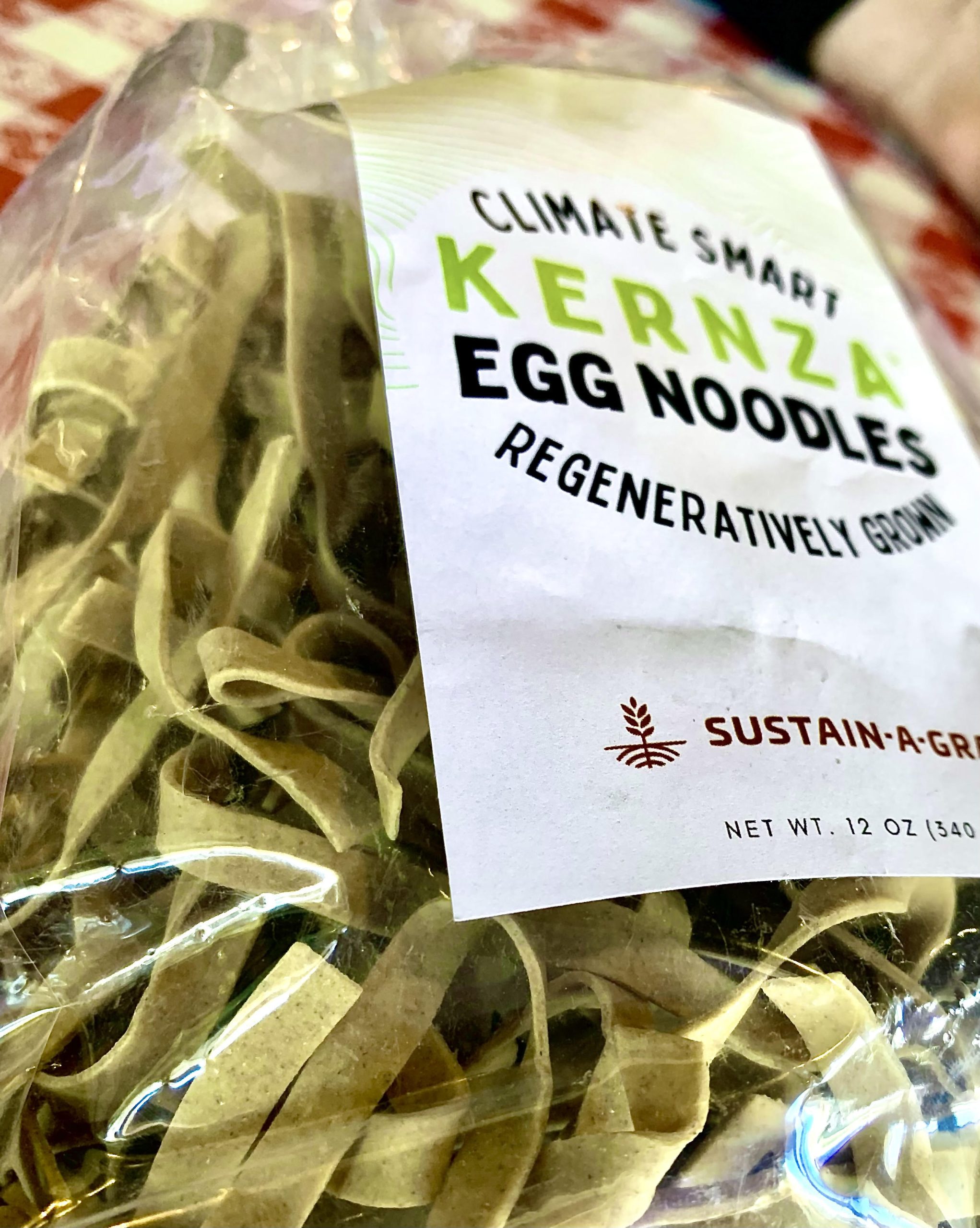 - A bag of Kernza® egg noodles is among the products marketed by Sustain-A-Grain. Photo by Tim Unruh