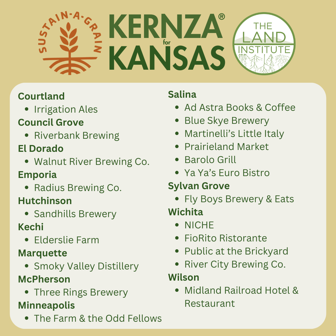 The Earth Day weekend event, dubbed Kernza®4Kansas, will feature the grain in food and beverages at restaurants, breweries and other sights from Wichita north to Courtland, west to Wilson, and Sylvan Grove and east/southeast to Council Grove and Emporia (check out the list).