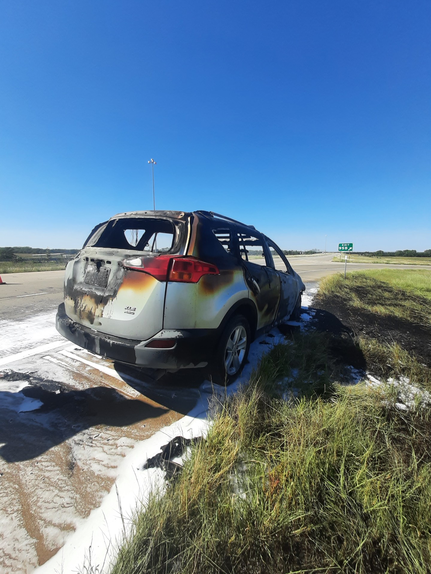 Saline County Sheriff Roger Soldan tells KSAL News, Tuesday afternoon, a 21-year old Salina man pulled his car over on US-81 highway in the rural county area. His Toyota RAV4 ignited after he was experiencing some problems with lights inside the car. Fire District 7 arrived at the scene to stop the fire.