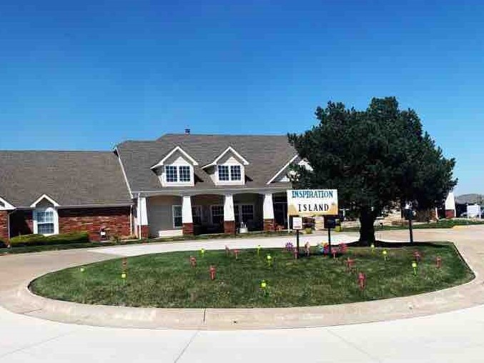 “Inspiration Island” is a grassy area in the middle of a circle drive at the facility.