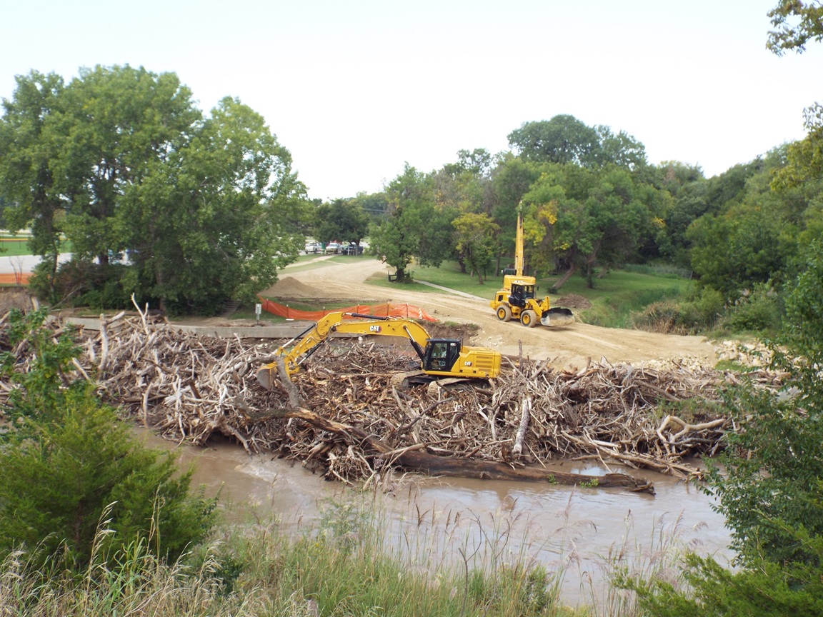 Work crews have cleaned out most of the channel, transported the timber and stacked it near the Salina Wastewater Plant just northeast of the city. Heavy rainfall last June, July and September led to a high volume of water and created a massive log jam near Bill Burke Park, prompting a months long effort to remove it.