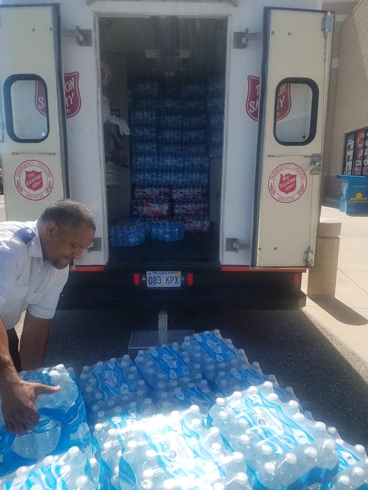 Hundreds of cases of bottled water were donated, enough to nearly fill to capacity the Salina Salvation Army’s large canteen truck. The water will be delivered to Eureka, where it will be distributed to victims of the tornado, and to those helping in the cleanup effort.