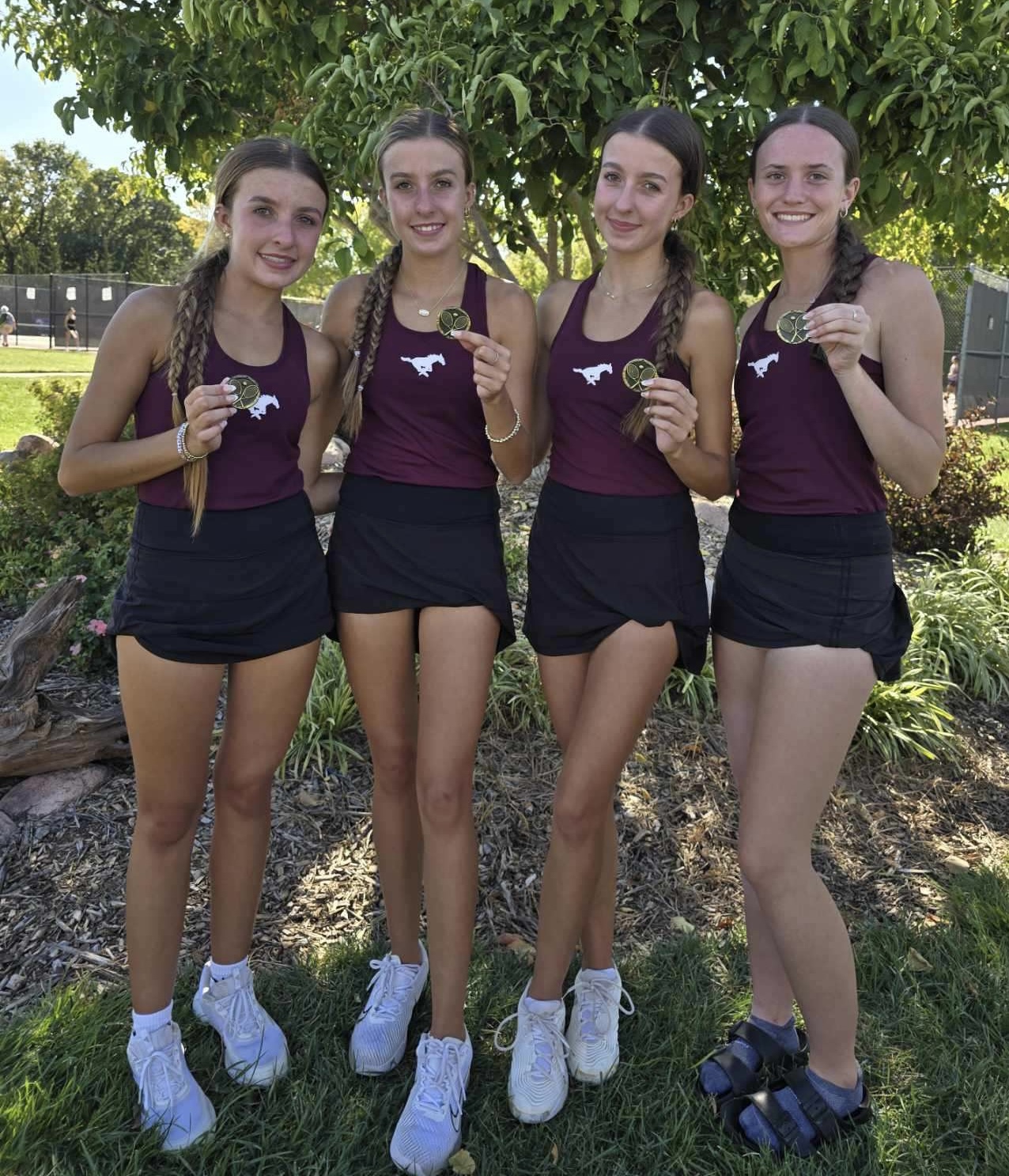 The Mustangs secured first place in both #1 and #2 Doubles on the day. At #1, the tandem of Addison and Mallory Renfro claimed their 5th tournament crown of the season, sweeping through competition by besting three top-ranked 6A foes in the tournament. The Renfro sisters defeated the #1 Doubles team from Blue Valley West 7-6 (1), 6-4 in the final round.