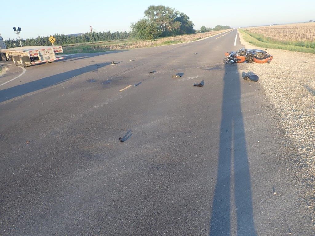 Deputies say that Martinez was unable to avoid the collision after the semi with a 53-foot trailer made a left hand turn in front of Martinez’s 2003 Yamaha. The driver of the 2020 Volvo semi truck, owned by Great Plains Trucking is 39-year-old Patrick Heer of Minneapolis who was not injured. He told investigators he did not see the motorcycle when he began his turn and added there was bright glare from his mirrors from the sunrise behind him.