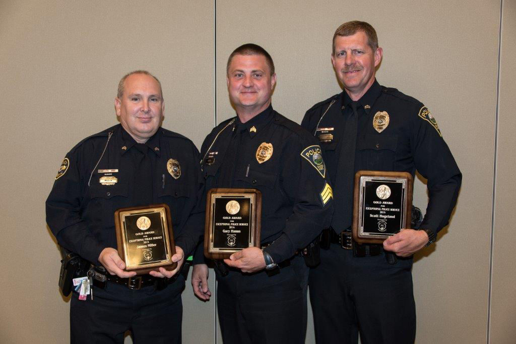 According to the department, Sergeant Gary Hanus, Master Patrol Officer Mike Miller and Master Patrol Officer Scott Hogeland were all recipients of the Gold Award for uncommon valor at the Kansas Association of Chiefs of Police awards program on Wednesday in Manhattan.